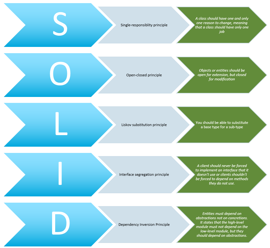 Let’s now, try to explain what is behind the acronym SOLID. Under each letter of the acronym is one individual design principle.