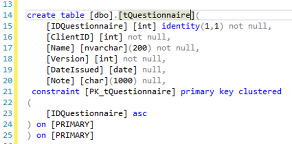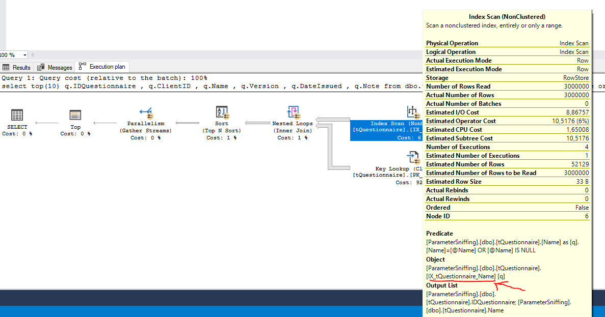 In this part I will describe a bad parameter sniffing example. For example I have a table dbo.t Questionnaire with the following structure: