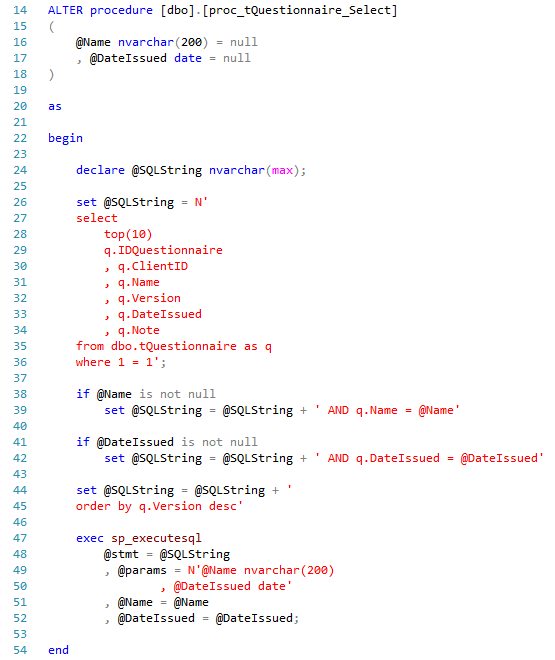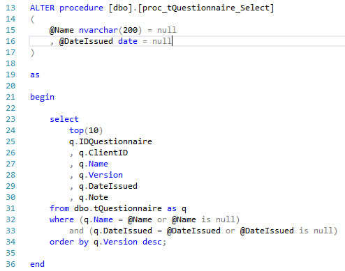 Second procedure call will be suppling @DateIssued = ‘20180212’ and @Name = NULL: